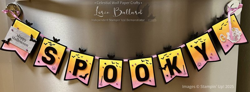 Halloween crafting is in full swing, and I couldn’t resist creating this cheerful and spooky banner using the Stampin’ Up! Spooky Sweet Suite Collection.